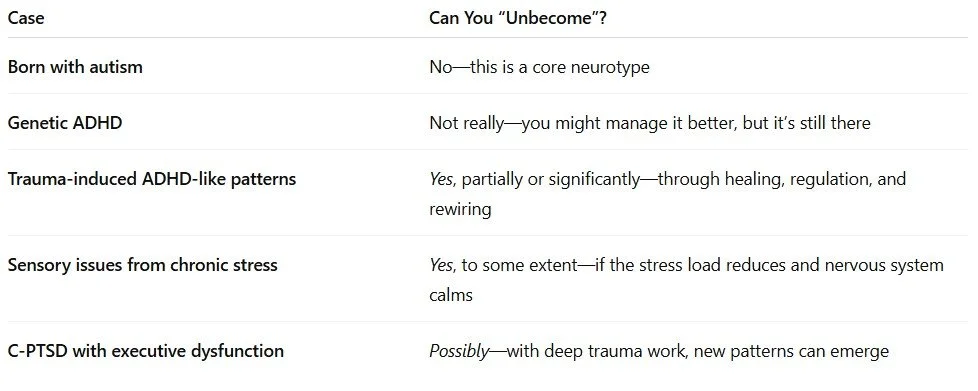 So yes—some people can absolutely "unbecome" neurodivergent if the root cause is trauma rather than innate wiring. But...