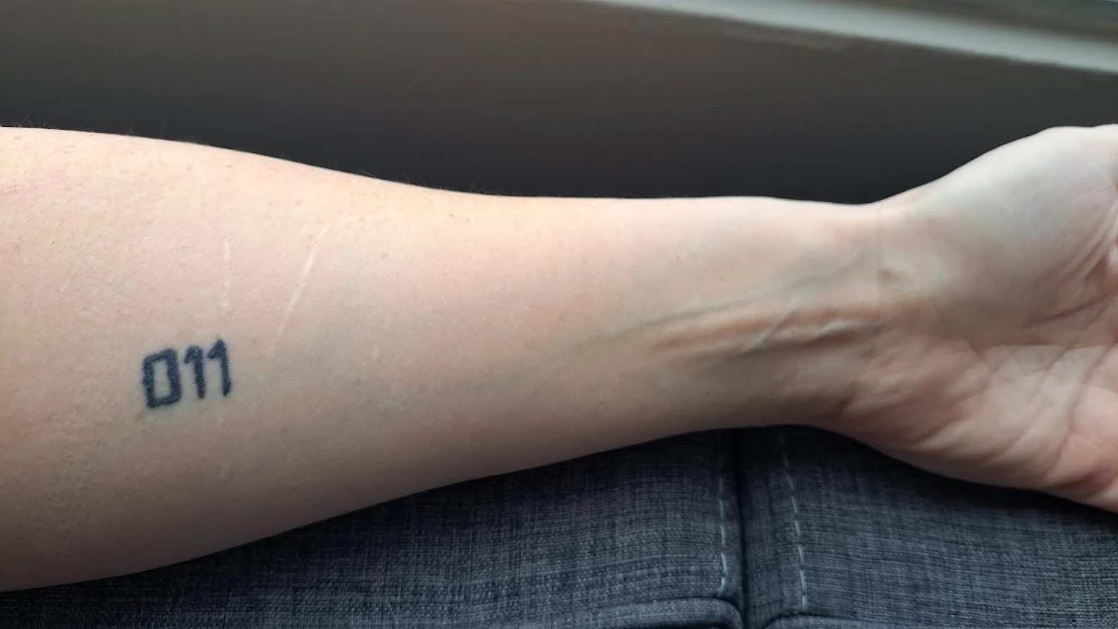 Before: Before the inking I got today, I already had a tattoo on my left arm. It says “011” and I got it in 2017 with my boyfriend at the time, Justin. It was my very first tattoo. The reason I got it had to do with the show Stranger Things. To me, Stranger Things is a story about a child with amazing, innate powers who was systematically psychologically controlled and indoctrinated, at times being forced to do things with her powers that scared her. This was a time in my life where I was just beginning to wrap my head around the effects of my own religious trauma in evangelical Christianity. That number “011” rang inside of my mind and my body, a validation of what I had experienced. Whereas, up until that point, I had kind of internalized this sense that I should just be able to “overcome” it. By virtue of leaving the faith, that should have been enough right? I had no sense of how much I had been conditioned and how I would carry that through my life regardless of whether I went to church ever again. Having “011” on my arm says to my eyes, “You’ve gone through some shit”, the subtext being, “be kind to yourself.”